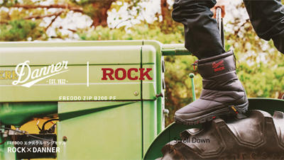 DANNERの冬の定番、FREDDOをベースにROCKのロゴを配した特別仕様のデザイン監修を担当させていただきました。